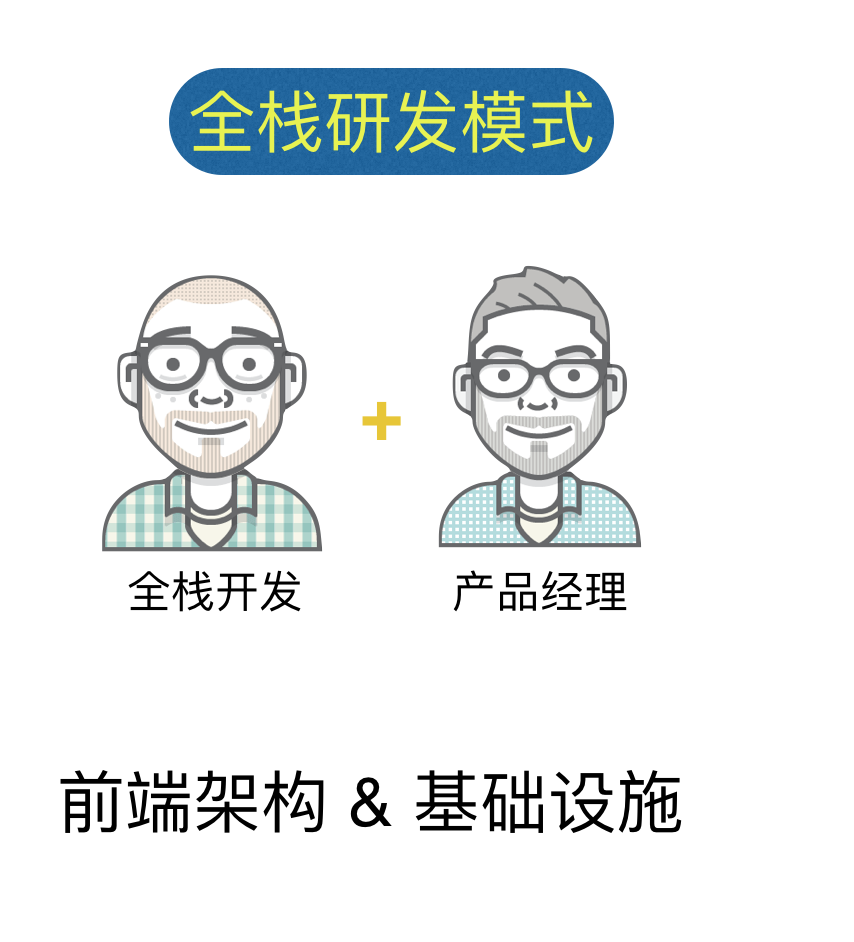 采用全栈开发模式,人人都是前端,而前端专业团队提供基础前端架构与基础设施
